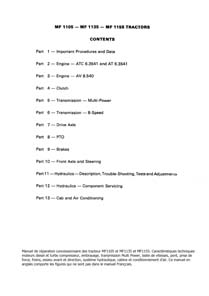 tracteurs MF1105, MF1135 et MF1155. Descriptions,